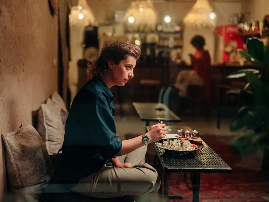 There, in a muted cityscape, she visits three people: a girl awaiting closure, a translator who has just completed a ten-year project, and a saxophonist yearning for her words. In each encounter, she gently feels their pulse—delivering a silent message only she seems to carry. In the final scene, she stands alone on a pedestrian bridge above a busy highway, watching the endless flow of the city.